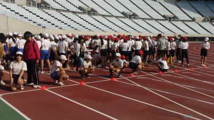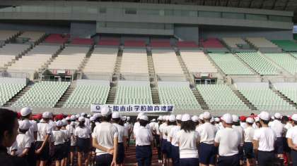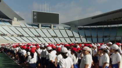 6年生が長居陸上競技場と球技場に、スポーツ交歓会に出かけました。