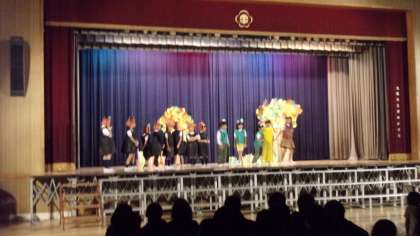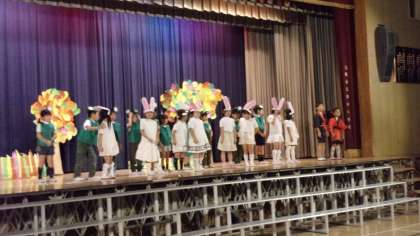 今日は学習発表会のリハーサルを行い、その様子を他の学年の子ども達が見れるようにしました。衣装も道具も本番と同様にして、確かめています。かかる時間や入れ替わりの時間なども測ってみます。