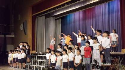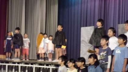 音楽劇「太陽のうた」をしました。合唱曲が多くありましたが、みんな全部覚えていて、きれいな声で歌えましたね。