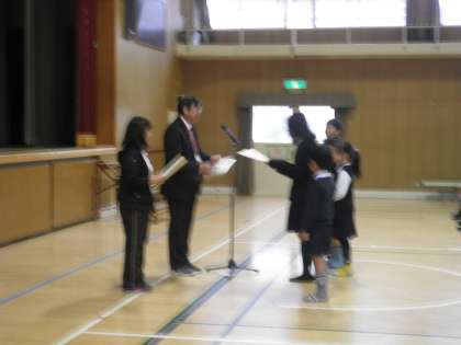 はじめに校長先生から、夏休みに応募した読書感想文の表彰がありました。