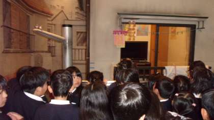 ここでは、過去の台風による被害や地震の後に起きた「津波」の被害などを学習しました。「ダイナキューブ・シアター」では、実際に「南海地震」が起きて、津波が大阪に来たらどうするか…という内容の映画でした。とにかく一人でも、安全な場所に避難することが大事だということが、改めてわかりました。