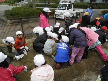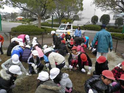 2年生が、八幡屋公園の花壇にポピーを植えました。