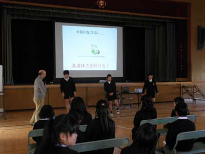 はじめに、健康委員会の児童が廊下の安全な歩行についての発表をしました。