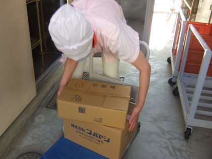 朝早くから、配送業者の方が食材の配送を