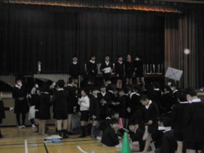 今日は、全学年の全児童で「田中小学校○×クイズ」を行いました。