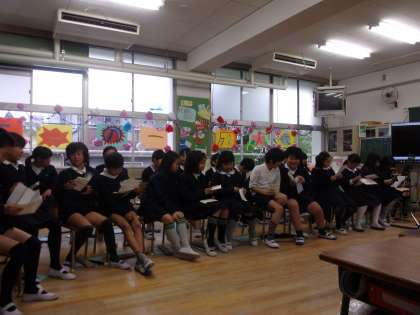 今までの自分をふりかえり、未来に向かって自分がどうなりたいかの宣言をお家の人に向けて行いました。