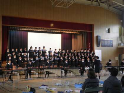 お家の人に、今までの感謝をこめて合奏や合唱を贈りました。