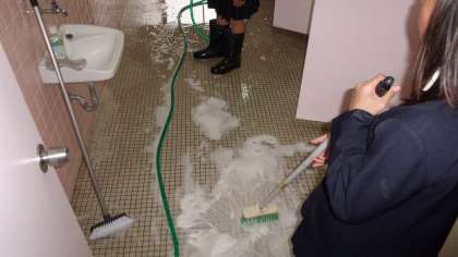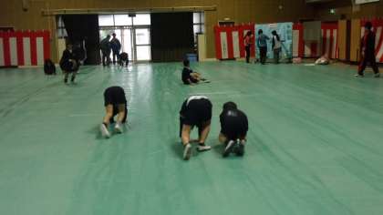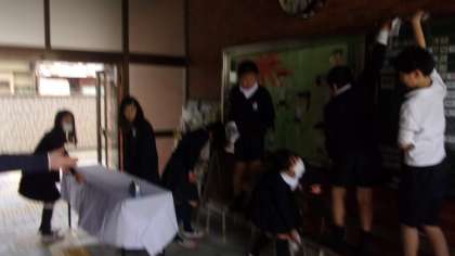 講堂やその周辺など、明日の卒業式にむけて、そうじをしてから準備をしています。