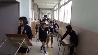 来年度の教室の配置を考えています。校舎改築があるので、2年生から5年生の教室の場所を変更します。子ども達が机やいすを持って運んでくれました。