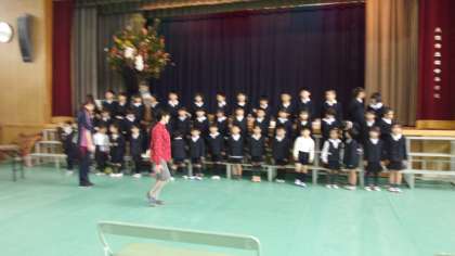 新2年生は、呼びかけや歌で、新1年生をお祝いします。
