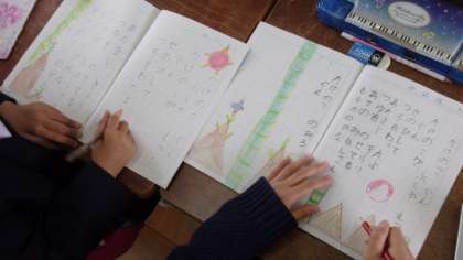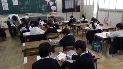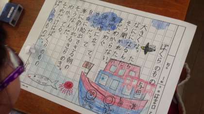 2年生と5年生が、国語の教科書の「詩の視写」をしていました。とても上手にかけていました。