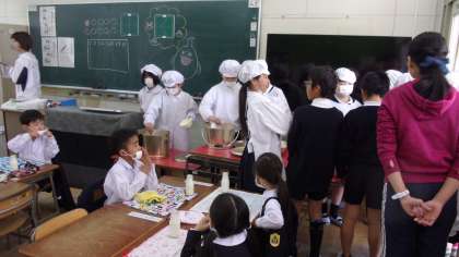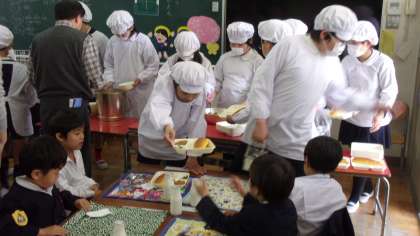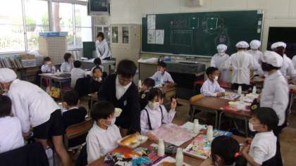 準備や配膳も、やってくれました。とっても助かりました。ありがとう、6年生!