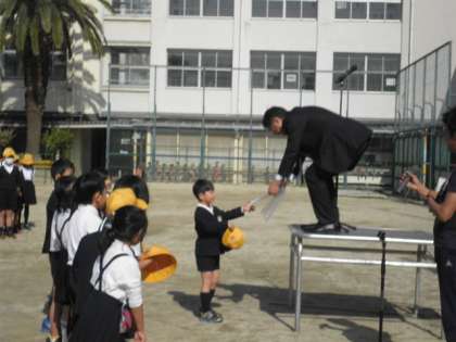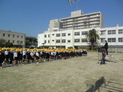 今週は、行事の関係で水曜日に行いました。今回は、今年に入って初めての朝会だったので、並ぶ場所の確認や朝会についてのきまりについて、担当の先生が話されました。また、子ども会のドッジボールの表彰も行われました。