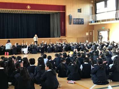 校長先生のお話のあと、今週の担当の先生から風邪の予防についてのお話がありました。