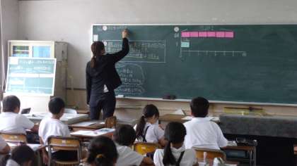 4年2組の齊藤瑞季先生が研究授業を行いました。算数の□を使った、わり算の学習でした。もとの大きさを□にして考えていくことが、なかなか難しいですね。5年生の単位量につながっていきます。今が大事ですので、しっかりとがんばってくださいね。
