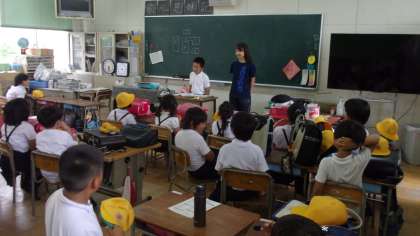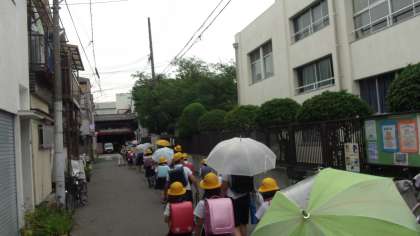 今日の5時間目に「登校地区別会」を行いました。各集団登校の班で、1学期の反省と夏休みに安全で健康な生活ができるよう、話し合いました。その後、担当の先生が付き添って、集団下校をしました。