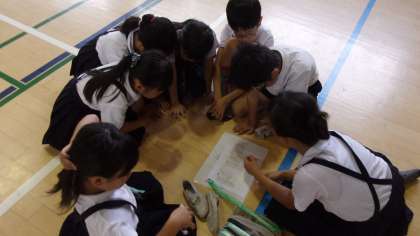 今日の児童集会は、8日(土)の田中フェスティバルのお店を回る順番を、みんなで考えました。