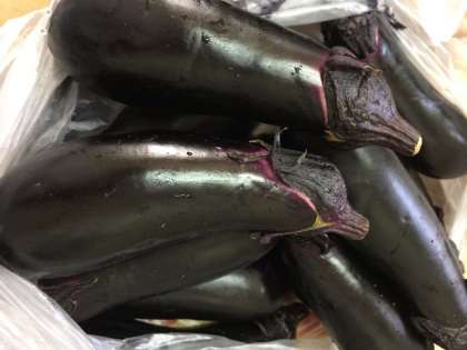 外の畑で、なすがたくさんとれ、おいしい時期は、6月から10月です。