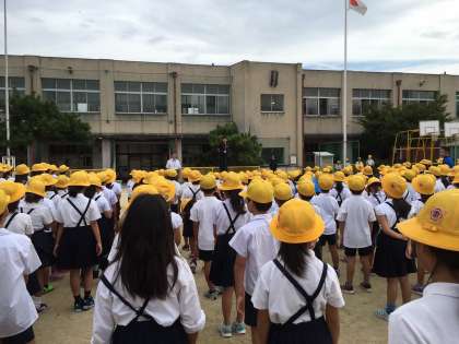 今日の児童朝会で、新しく来られた竹下先生と教育実習の花月先生の紹介がありました。