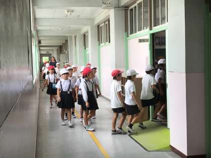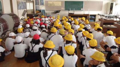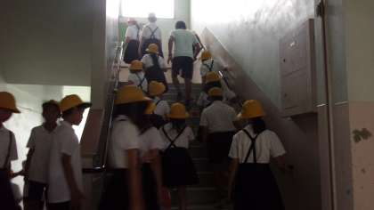 大阪880万人訓練に合わせて、11時からサイレンと地震・津波の放送を聞いた後、実際に地震と津波を想定した避難訓練を実施しました。