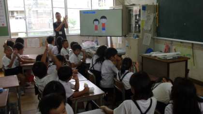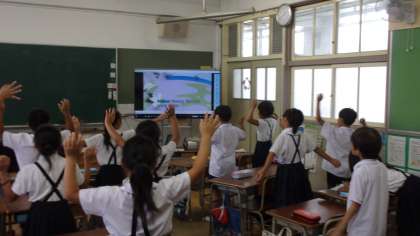 今日から毎週水曜日の昼の15分間を使って、1学期と同じように英語の学習をしていきます。3年生と2年生の様子です。