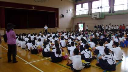 例年よりも早いのですが、6年生が港南中学校へ行って、部活動を体験しました。事前にやってみたい部を決めておき、今日はその部で活動しました。3小学校が集まって、すごい人数でした。