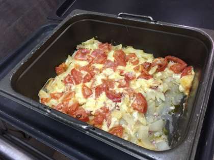 ★今日の「じゃがいもとトマトのチーズ焼き」には生のトマトが使われています。