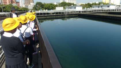 4年生が柴島浄水場に社会見学に行きました。大阪市の水道のことについて、学習しました。淀川の水をだんだんときれいにしていき、最後に高度浄水処理でオゾンや活性炭素を使って安全でおいしい水になっていくことがわかりました。