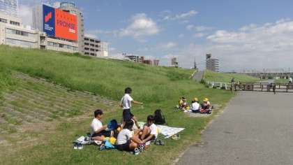 天気がいいので、淀川の河川敷でお弁当を食べました。