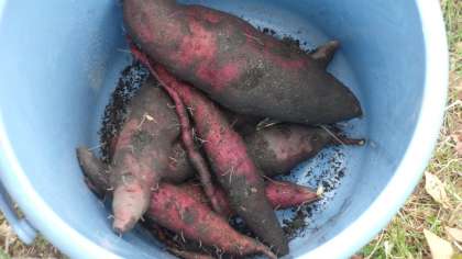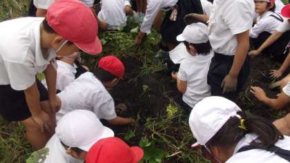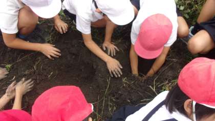 学習園で育てていた「さつまいも」を、今日みんなで掘り出しました。けっこう大きないもがほれました。