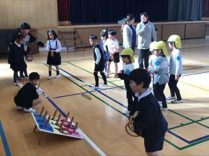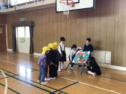 1年生の児童と一緒に昔遊びを楽しみました。