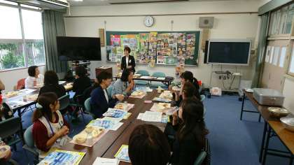 栄養指導の先生から、食材のことや調理の様子、学年に応じた分量、また、2学期から実施され