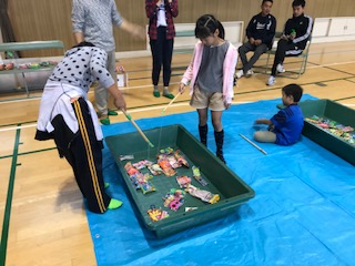 29日(日)に子ども会主催の「子どもカーニバル」が雨の中ですが、行われました。講堂や廊下、多目的室を使いました。プラ板やつり、ストラックアウト、型ぬき、昔あそびなどのコーナーがありました。