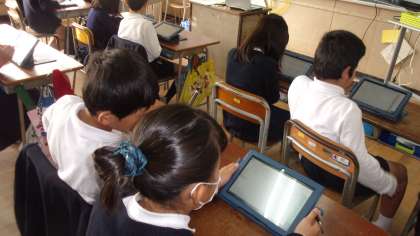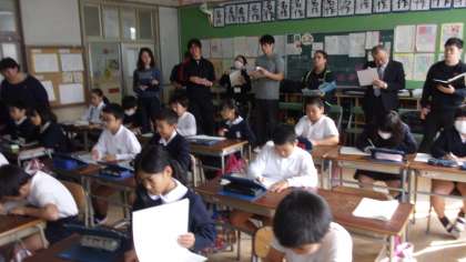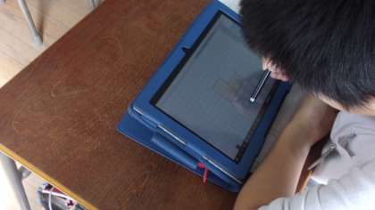 4年生が算数の面積の研究授業を行いました。タブレットも子ども達が使って、考えを深めていました。