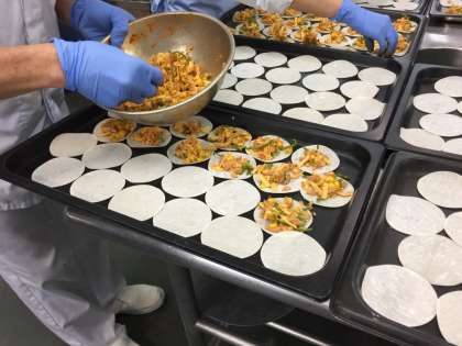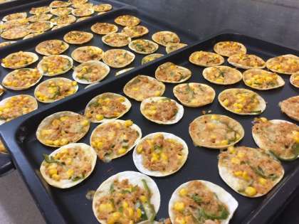 ☆給食のピザは、ギョーザの皮を使って、作っています。