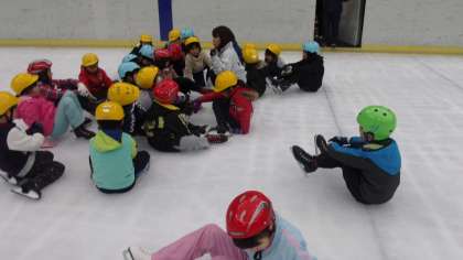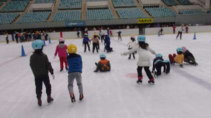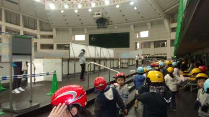 今日は3・4年生と1・2年生がスケート体験に行きました。1年生は、初めての体験だったので、転ぶ子がたくさんいました。でもだんだんと上手になってきています。