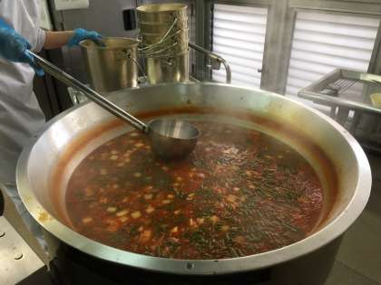 献立のねらいは、「もりだくさんの野菜で栄養満点(えいようまんてん)、ひとつのいろじゃつまらない!彩のよい野菜をたくさん使用し、見た目をカラフルにして、苦手な野菜を食べやすくしました。」です