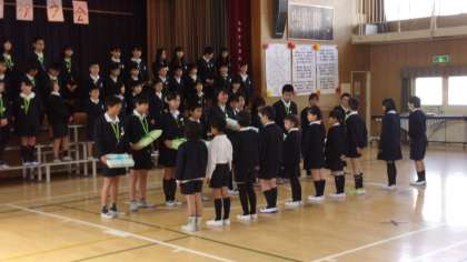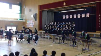 6年生から、プレゼントと合奏がありました。とても上手に演奏できていました。