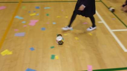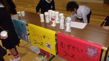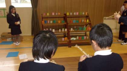 2年生がまず遊び方を説明します。そのあと1年生が遊びます。