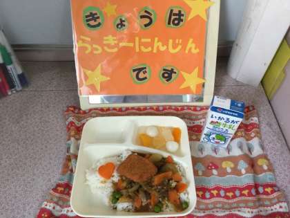 今日の給食は、みなさんが1年生になったお祝いの献立(こんだて)です。