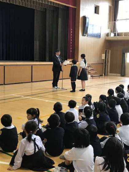 続いて、校長先生からのお話があり、その後に健康委員会のお知らせがありました。
