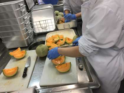 今日の給食には、網目(あみめ)のあるクインシ—メロンが登場します。