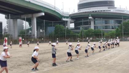 今日の午後、5・6年生が運動会の最後の練習をしました。