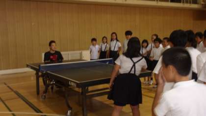 トライアスロンの選手と車いす卓球の選手で、2年後の東京パラリンピックでメダルが取れるよう頑張っているそうです。窓口になってくださった大西さんからもお話を聞きました。