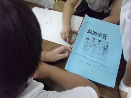5年生が林間学習に向けて、グループで活動を始めていました。