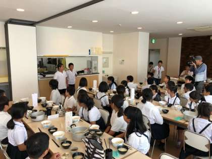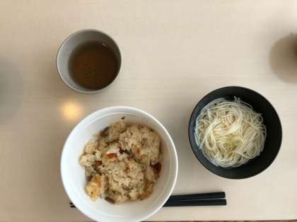 台風の関係で、お弁当ではなく三日目のメニューの五目ご飯とそうめん汁に変更になりました。