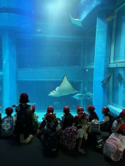 海遊館の中でいろいろな海の動物を見ました。