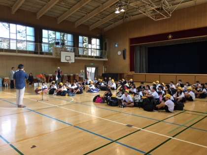 児童代表がお出迎えをしてくださった方々にお礼の言葉を述べています。