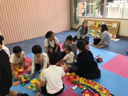 休み時間には、5年生の児童が一緒に遊びました。