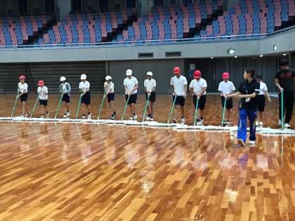 終わった後、運動委員会の子たちが体育館のモップがけをしてくれました。ありがとう。